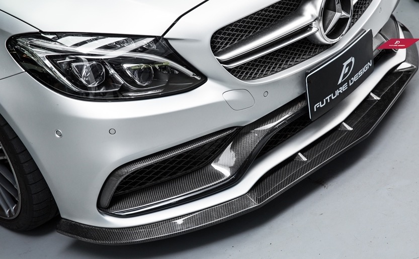 BENZ メルセデス・ベンツ W205 C63フロントバンパー用リップスポイラー 本物DryCarbon ドライカーボン